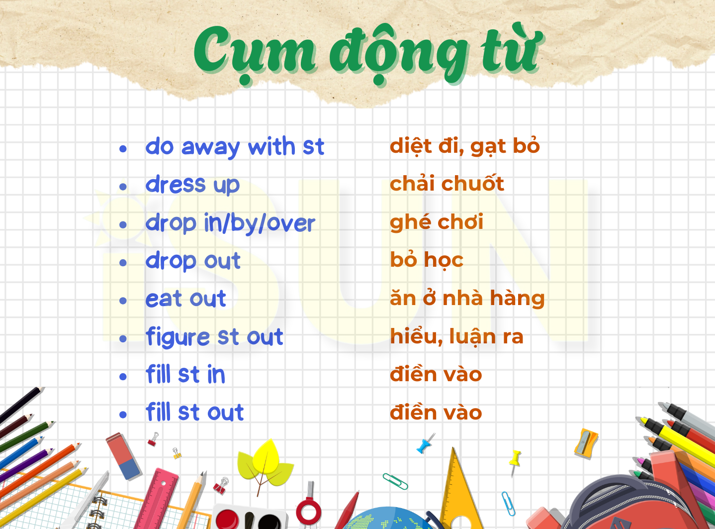 Dù bạn là người mới học hay đã học tiếng Anh lâu năm, hãy cùng iSUN khám phá và luyện tập để nâng cao vốn từ vựng qua từng cụm động từ nhé!