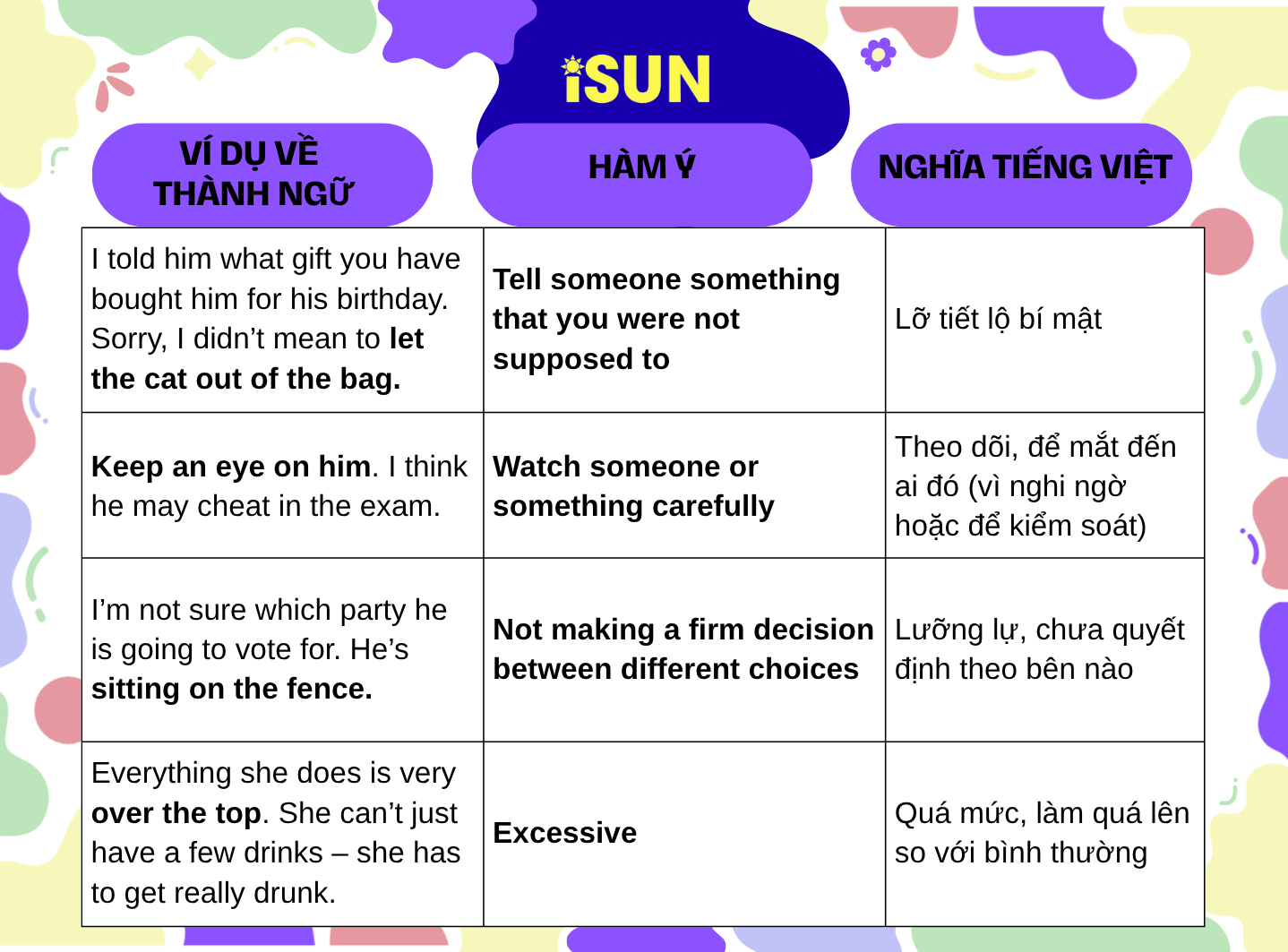 Chủ đề “thành ngữ (idioms)” trong tiếng Anh là một trong những phần thú vị nhất nhưng cũng khó nhằn nhất khi học tiếng Anh — vì người bản xứ không nói theo nghĩa đen mà dùng nhiều ẩn ý, hình ảnh, và văn hóa để biểu đạt cảm xúc hay tình huống.