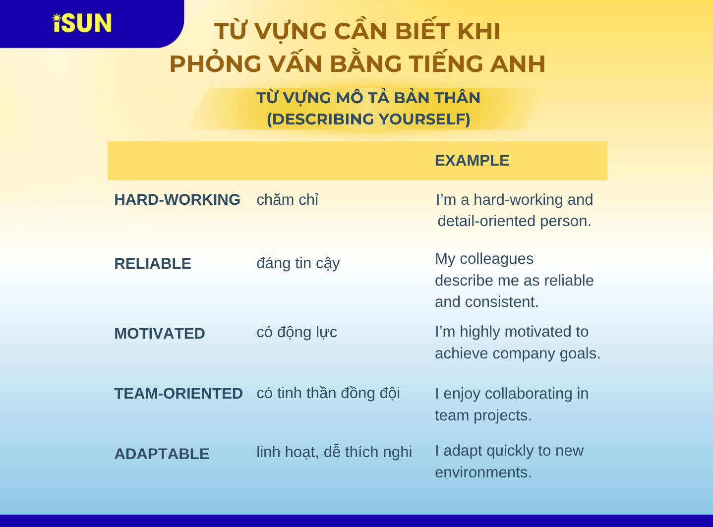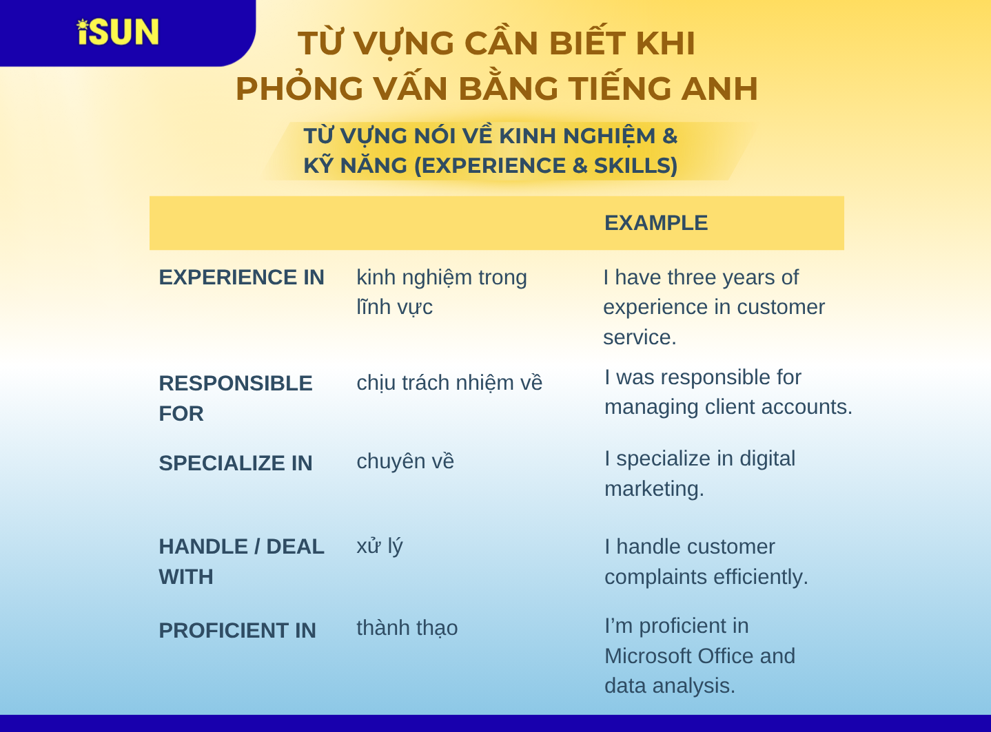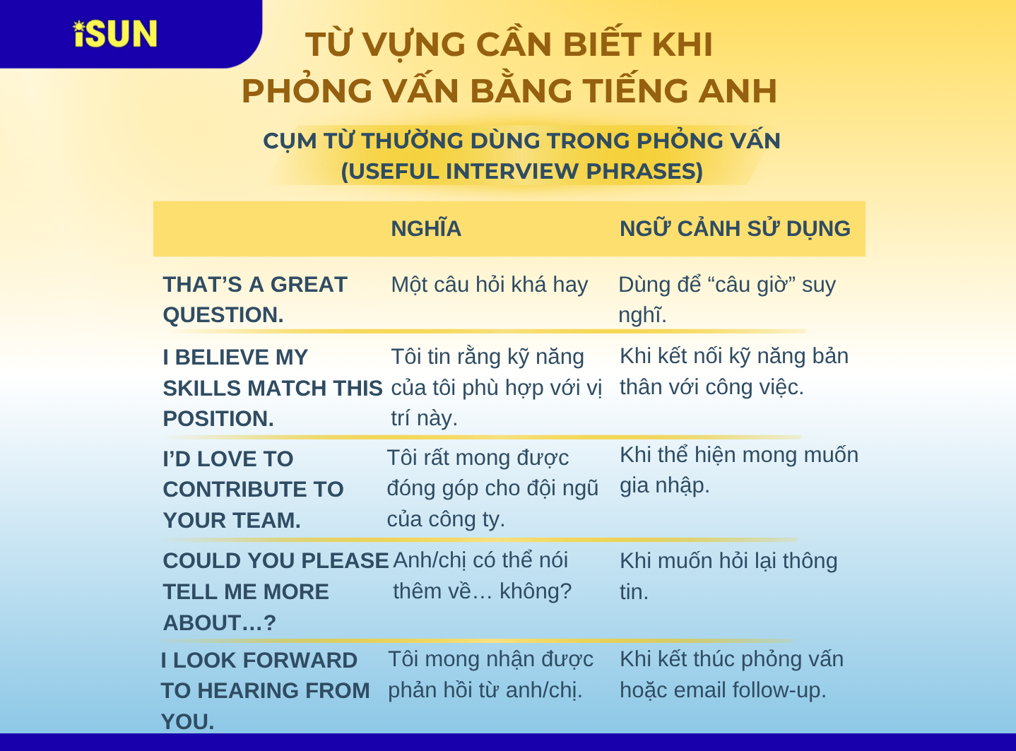 TỪ VỰNG CẦN BIẾT KHI PHỎNG VẤN BẰNG TIẾNG ANH