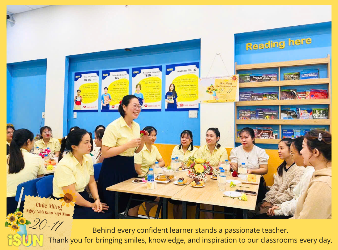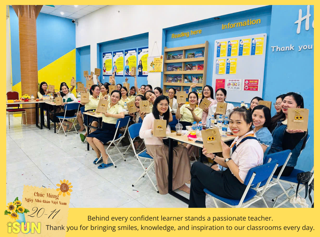 Ngày Nhà giáo Việt Nam 20/11 luôn là dịp đặc biệt để mỗi chúng ta lắng lại, nhìn về hành trình gieo chữ đầy yêu thương của người làm giáo dục. Trung tâm ngoại ngữ iSUN tổ chức chương trình 20/11 với mong muốn mang đến một không gian chia sẻ – gần gũi – truyền cảm hứng, nơi các giáo viên và nhân sự được kết nối thông qua những hoạt động ý nghĩa.
