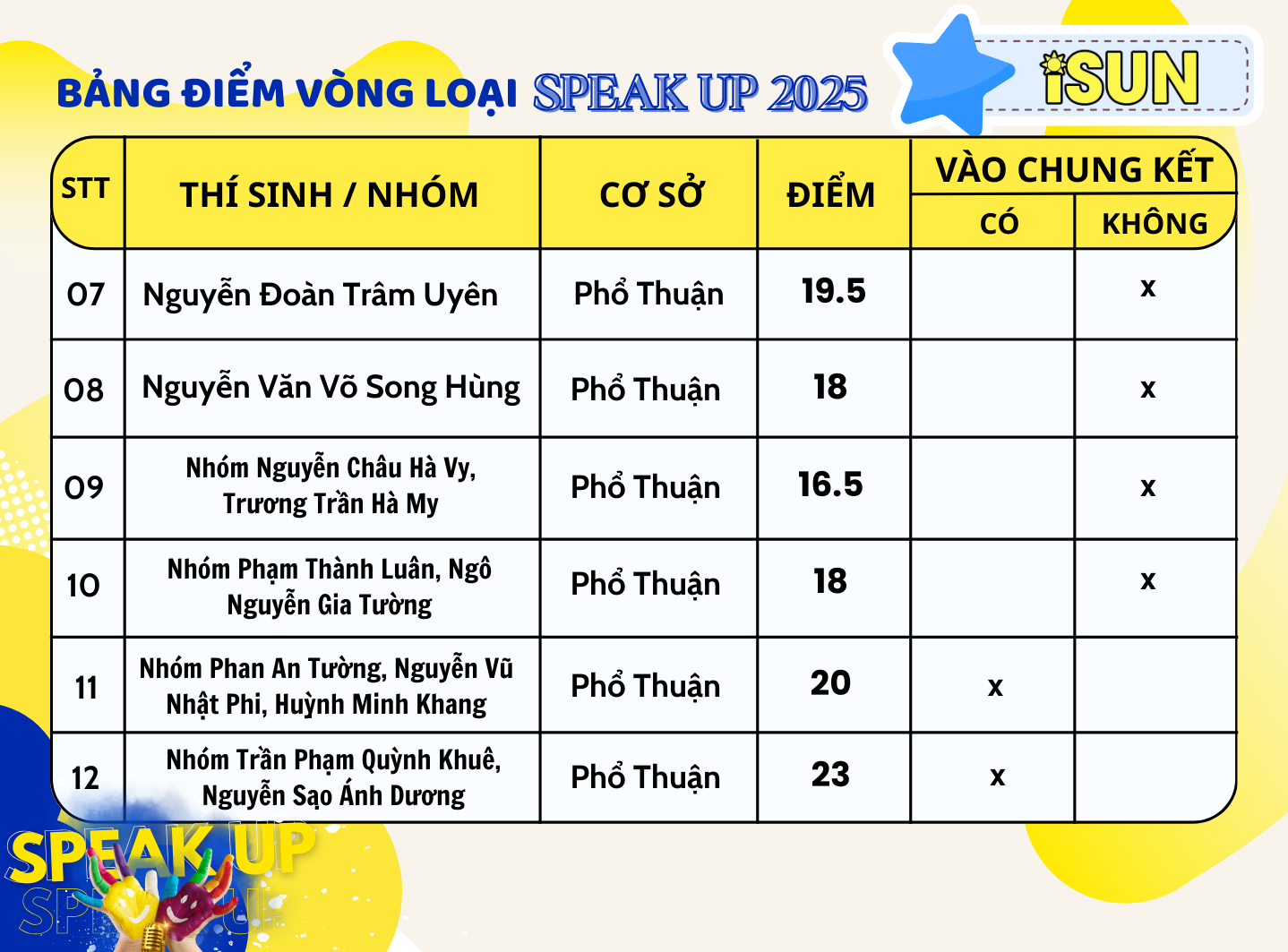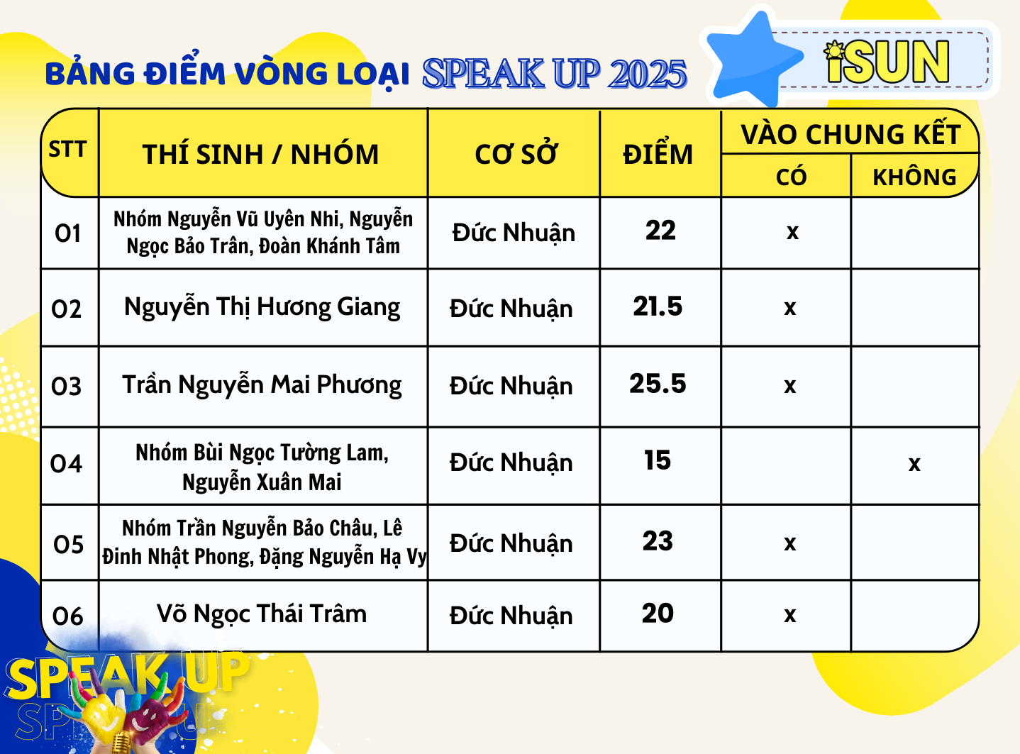 KẾT QUẢ VÒNG LOẠI SPEAK UP 2025