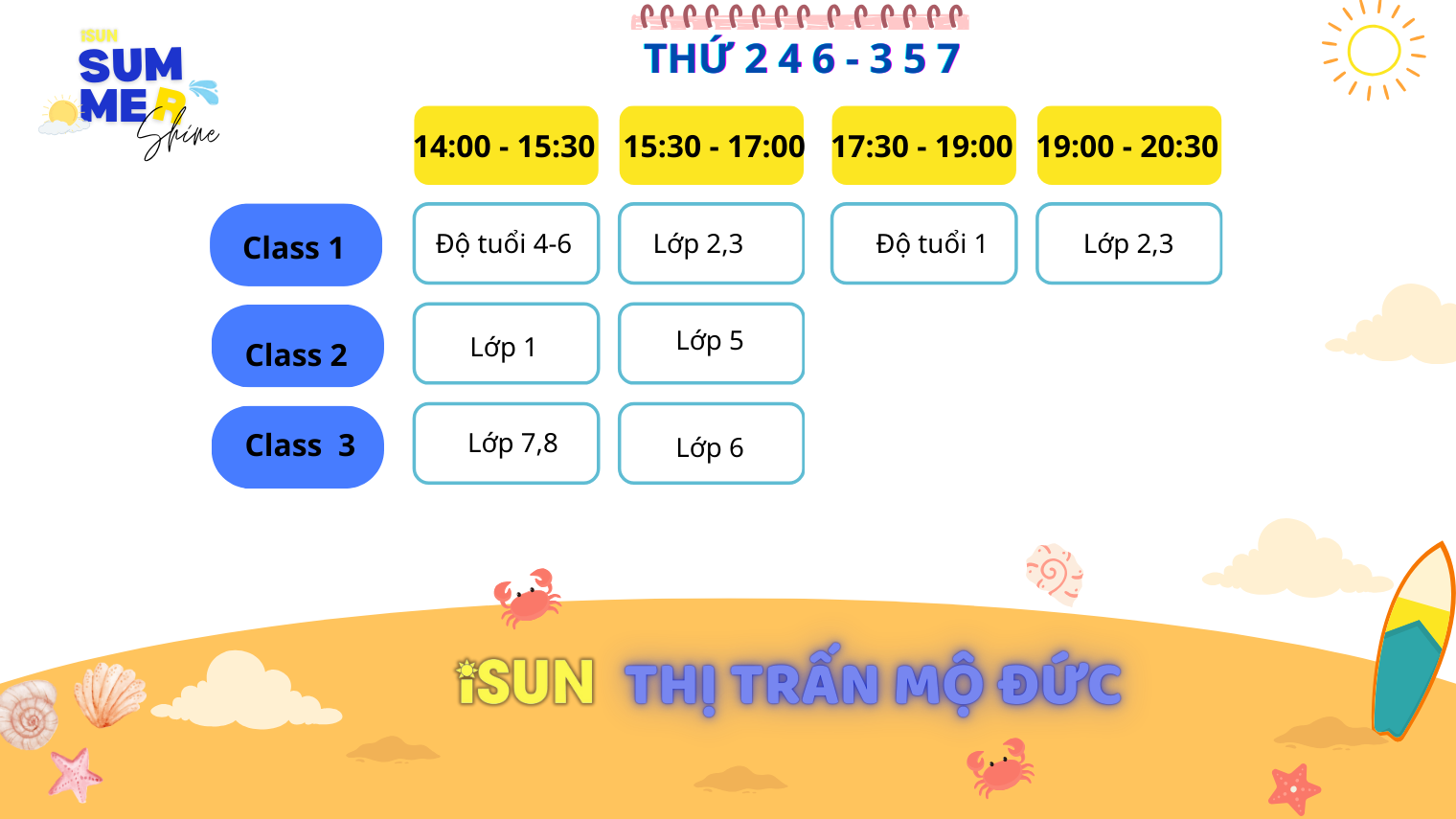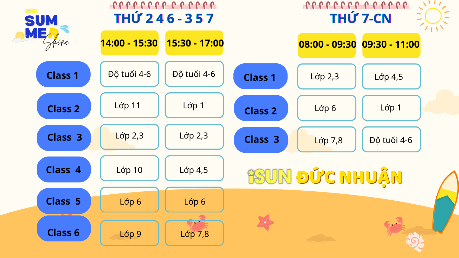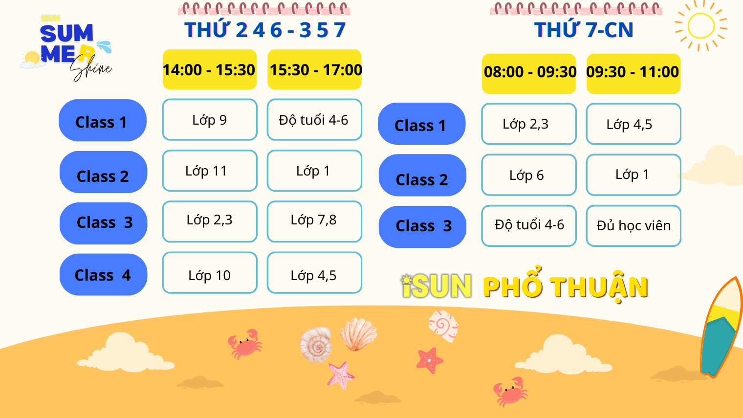 iSUN gửi đến bạn lịch học hè tại 6 cơ sở, hãy tham gia ngay để trải nghiệm một mùa hè hám phá và hoàn thiện cùng iSUN nhé!