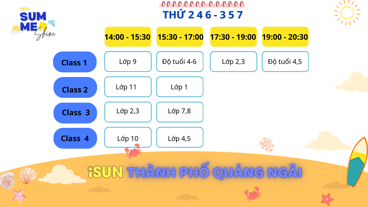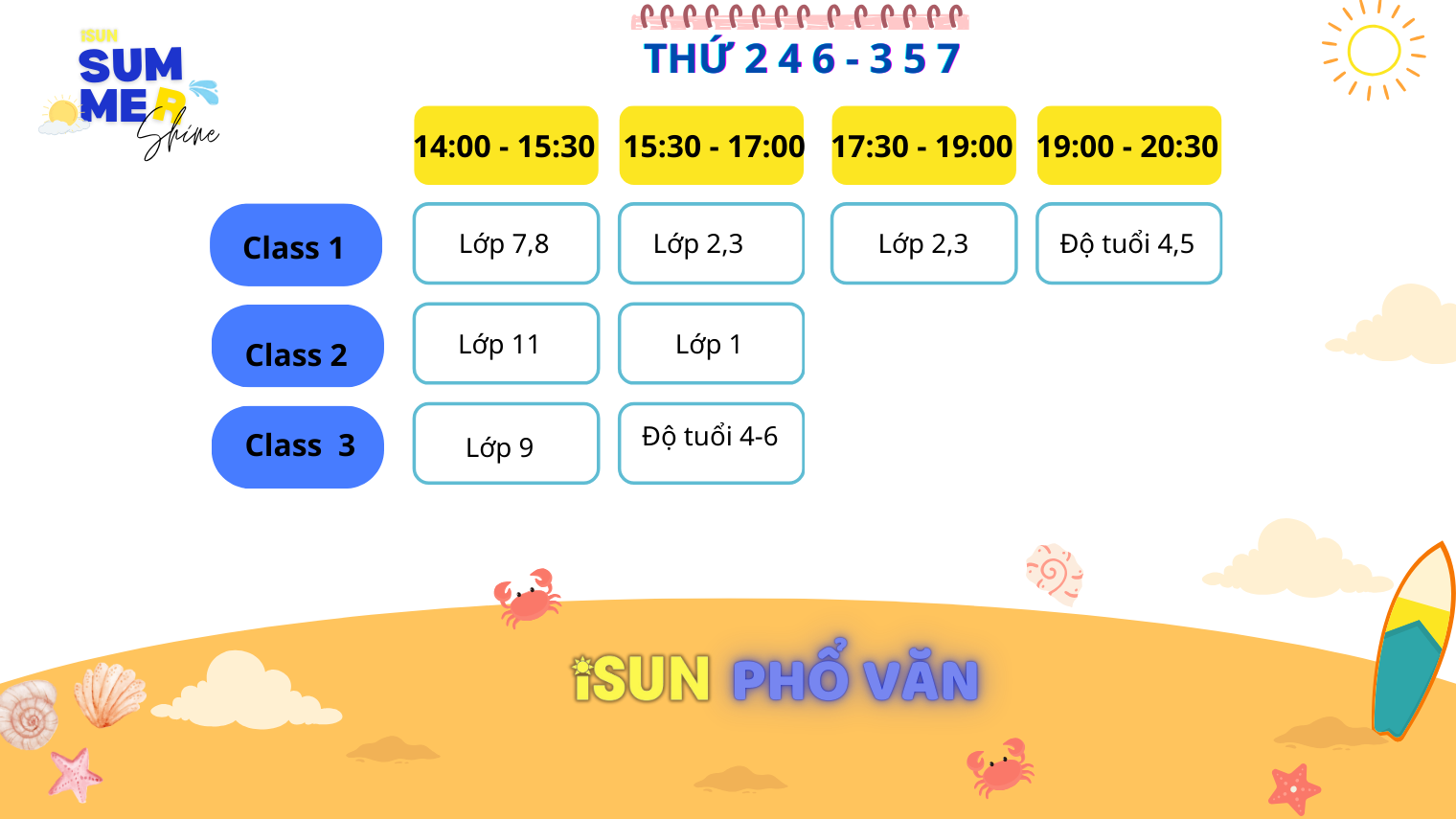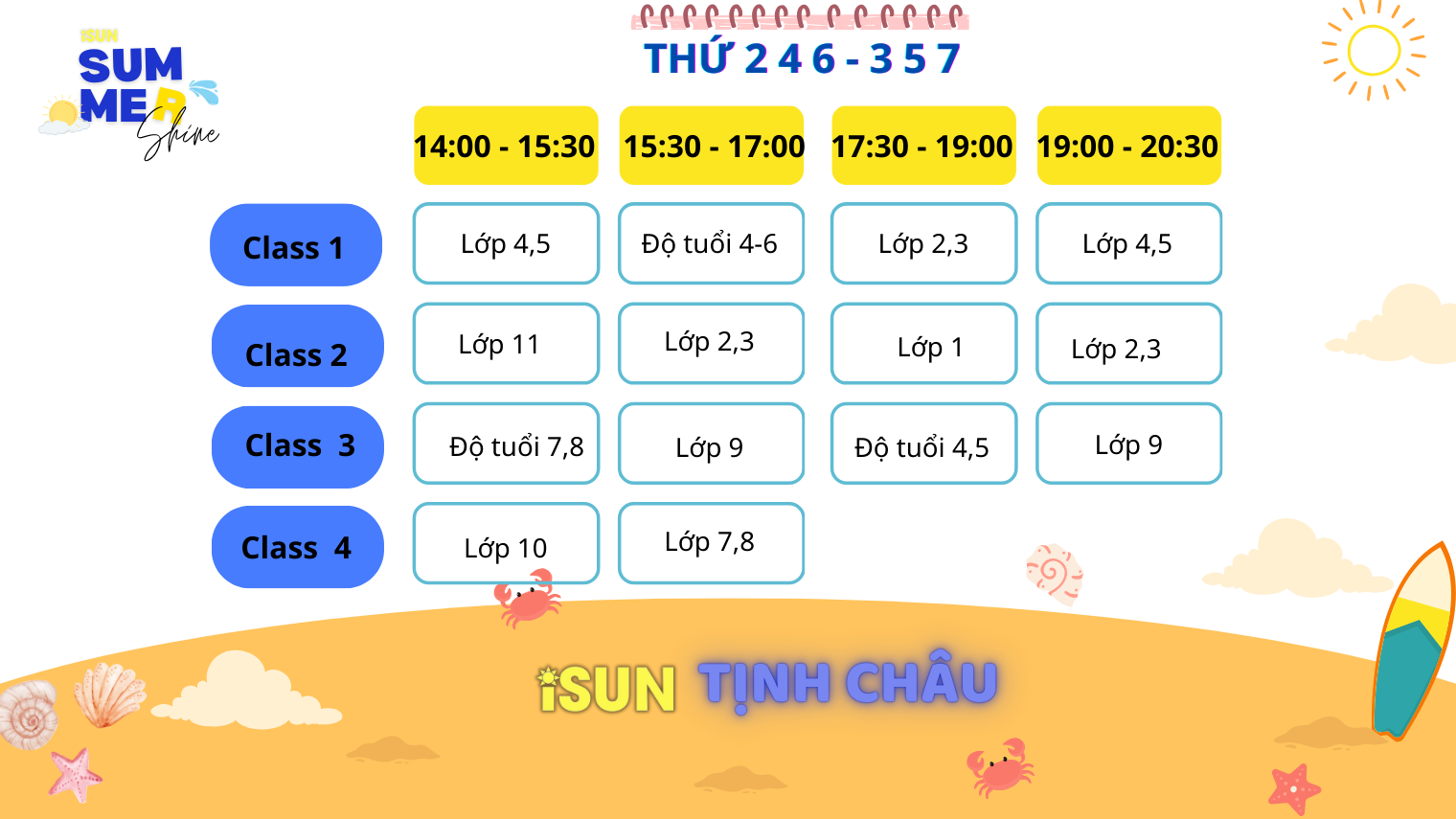 iSUN gửi đến bạn lịch học hè tại 6 cơ sở, hãy tham gia ngay để trải nghiệm một mùa hè hám phá và hoàn thiện cùng iSUN nhé!