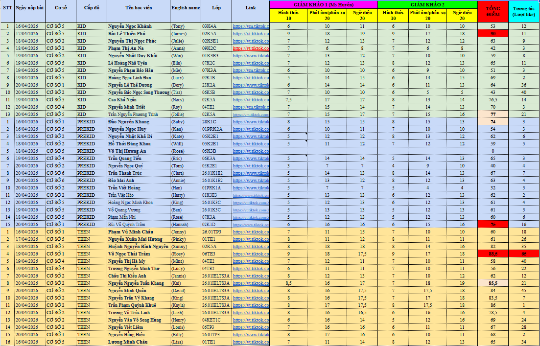 BẢNG ĐIỂM CHI TIẾT CUỘC THI