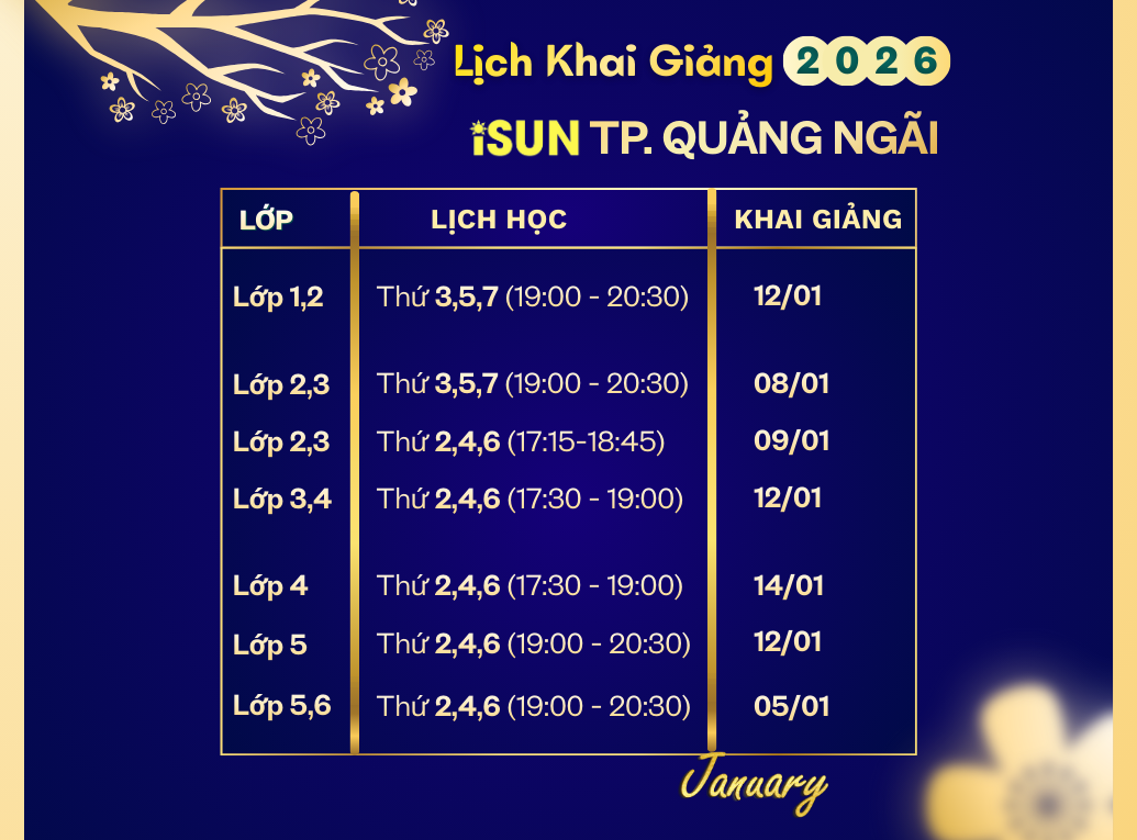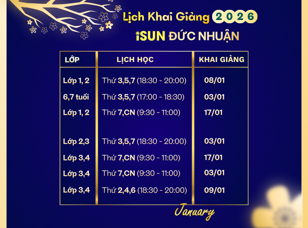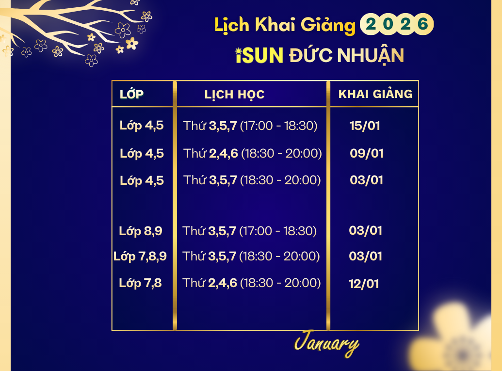 Quý phụ huynh vui lòng liên hệ iSUN để đăng ký lịch khai giảng tháng 1, cùng con mở ra một khởi đầu mới trọn vẹn, tích cực và đầy cảm hứng học tập.